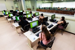 Encerrou neste final de semana o terceiro e último turno do teste APTIS – testes de nivelamento do programa Inglês Sem Fronteiras. O Instituto de Informática disponibilizou 07 laboratórios equipados com ar condicionado para que 320 alunos realizassem a prova.