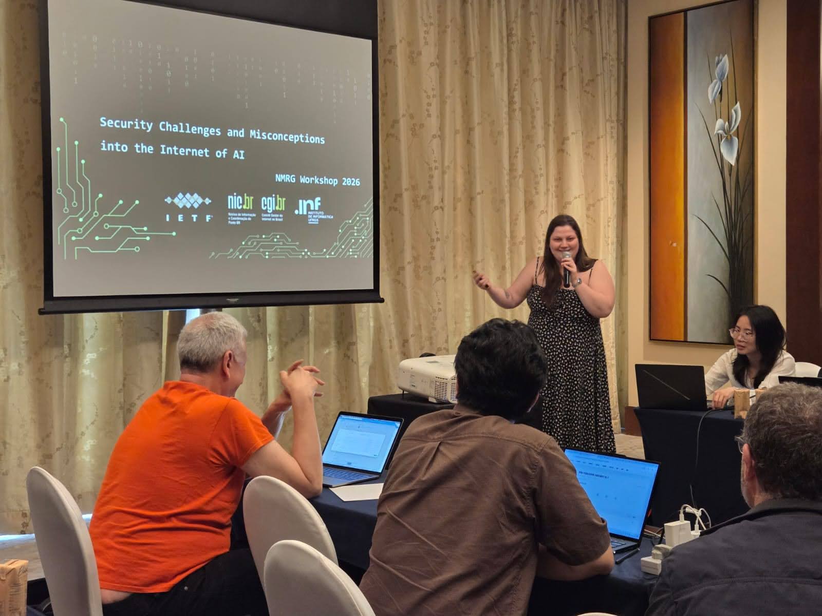 A participação do Instituto de Informática faz parte de um projeto do Comitê Gestor da Internet no Brasil (CGI.br) para fomentar a participação de pesquisadores brasileiros nas reuniões da IETF. Participaram da IETF 125 o professor Jéferson Nobre, atual co-chair do Network Management Research Group (NMRG); o professor e pós-doutorando Leandro Bertholdo, com a apresentação “Constraint-Driven Architecture for Interdomain Intent Handling”; a aluna de doutorado do PPGC Laura Soares, com a apresentação “Future Research Directions on Energy-Aware Security Mechanisms”; e a mestranda do PPGC Roberta Robert, com a apresentação “Security Challenges and Misconceptions into the Internet of AI”. A inclusão do Brasil em organizações como a IETF é fundamental para a soberania digital, pois atualmente existe uma predominância da representação de entidades europeias, asiáticas e norte-americanas nos espaços internacionais de discussão. Nesse contexto, aspectos operacionais da Internet particulares ao Brasil e à América Latina podem passar despercebidos durante a elaboração de futuros padrões da Internet.