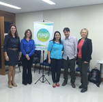 Estiveram presentes Simone Kosmalski, representante do SEPRORGS, Everaldo Daronco, representante do TRINO POLO, Silvana Kaster Tavares, representando a HESTIA, Luciana Nedel, representando o CEI e o NAGI, Aurora Zen e Daniela Callegaro, representando a Escola de Administração e o NAGI. O projeto NAGI-UFRGS é uma iniciativa do Instituto de Informática em parceria com o Instituto de Física e a Escola de Administração, todos da UFRGS.