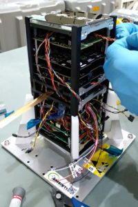 O aluno de doutorado Fabio Benevenuti fez também toda a parte de controle dos módulos dos experimentos e a integração e verificação final dos componentes do sistema. “Um dos grandes desafios foi integrar todos módulos, que já estavam funcionando isoladamente, dentro da placa de circuito que é compartilhada também com experimentos da UFSM e controle do magnetômetro, e respeitar as regras do protocolo de comunicação com o computador de bordo do satélite, tudo isso sempre procurando minimizar o uso da energia fornecida pelas baterias e painéis solares”, diz o doutorando Fábio Benevenuti.