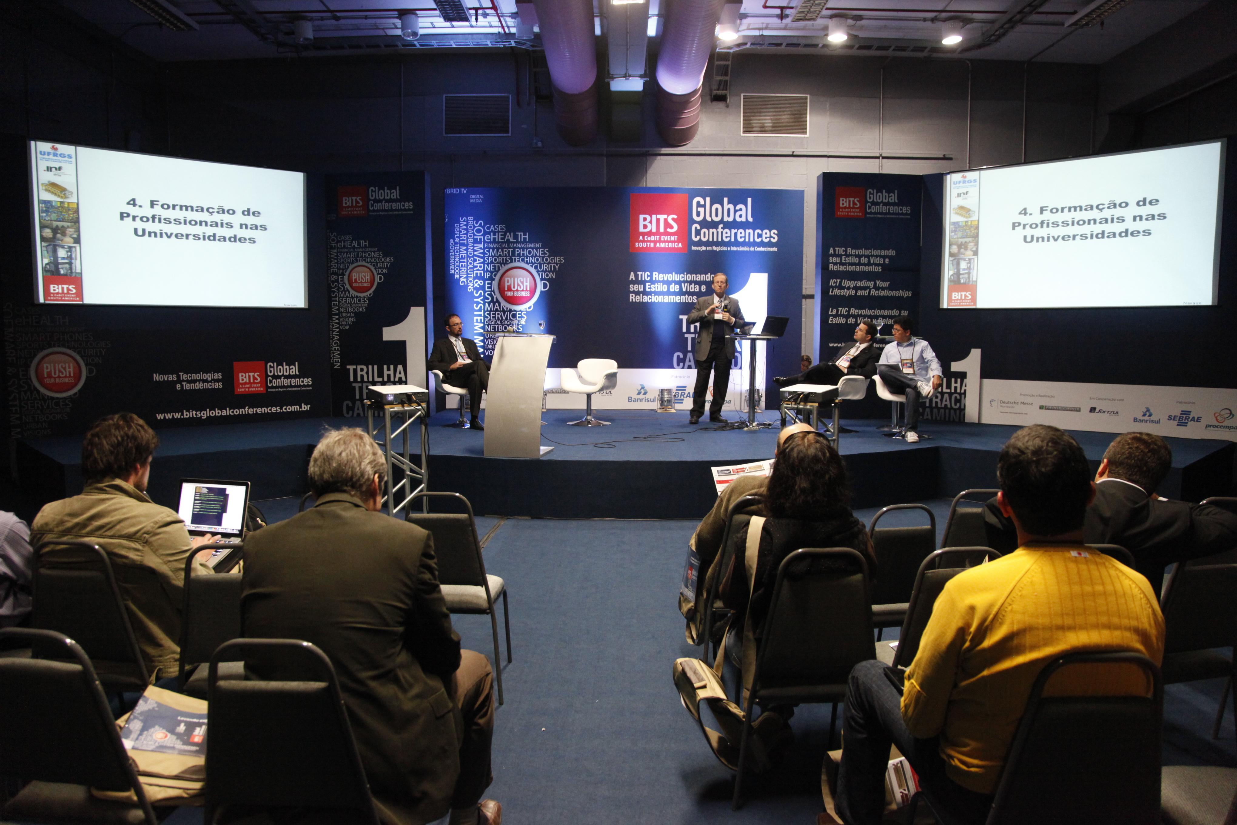 | 6. Professor Philippe Navaux palestra na BITS Global 2012 No dia 15 de maio, durante a BITS Global 2012 que aconteceu no Centro de Eventos da FIERGS, o professor Philippe Navaux palestrou sobre “A formação do profissional de TIC”, dentro da Trilha 1: As TICs revolucionando seu estilo de vida e relacionamentos. Os temas abordados foram: como o mercado de TIC está influenciando nosso mercado de trabalho; uma visão internacional da área de TIC; a evolução da área de TIC no Brasil; a formação de profissionais nas universidades e uma análise da evolução e distribuição da formação no Brasil.