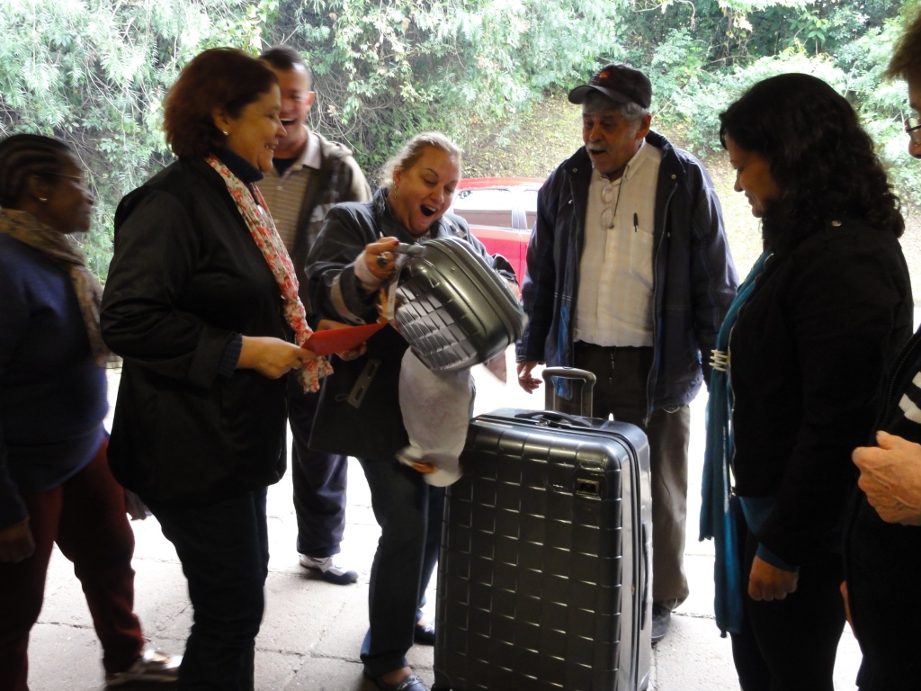 | 5. Funcionários homenageiam a colega Lourdes (Lurdinha) No dia 19 de junho, sexta-feira, os técnicos-administrativos do INF homenagearam a colega Lourdes Tassinari (Lurdinha) por sua aposentadoria, com um churrasco. Além de muita descontração, houve também momentos de grande emoção, principalmente quando a Lourdes abriu os presentes e leu o cartão dado pelos colegas do INF.