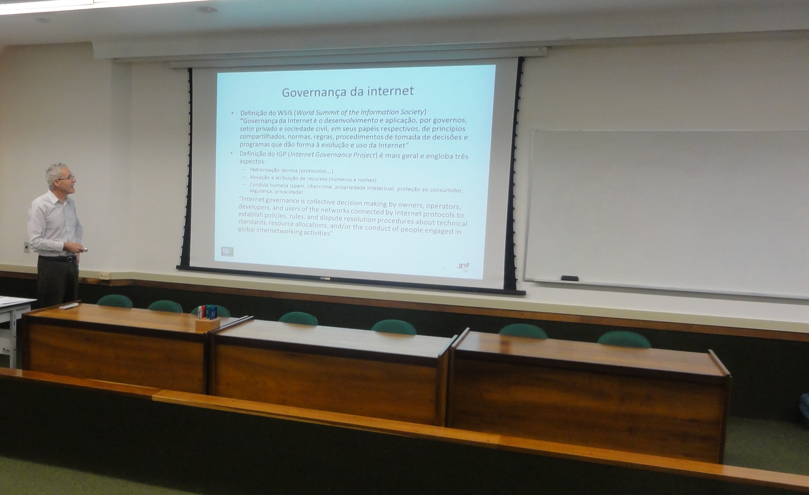 | 7. Prof. Flávio Wagner palestra no INF No dia 29 de novembro, sexta-feira, o prof. Flávio Rech Wagner ministrou a palestra intitulada “O Comitê Gestor da Internet no Brasil e o Marco Civil da Internet”. A palestra integra a Série de Seminários do Instituto de Informática e aconteceu no Auditório Prof. Castilho, do Instituto. |