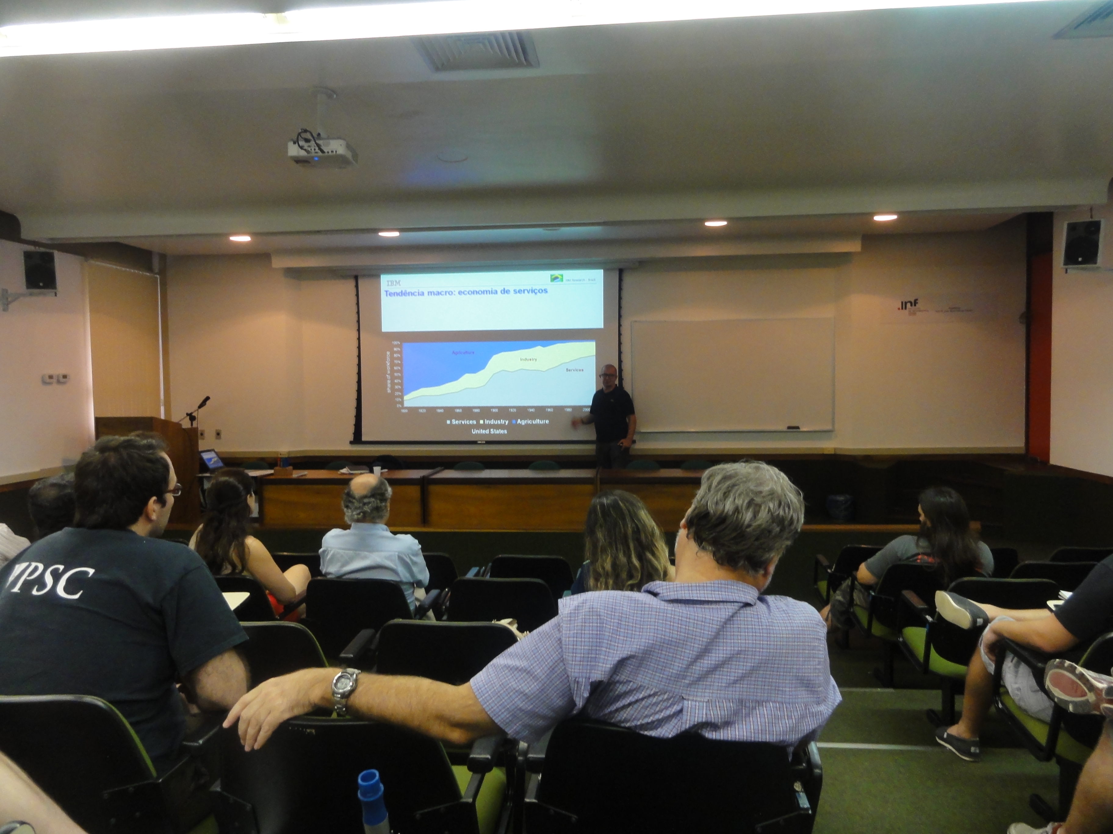 4. Dr. Fábio Gandour da IBM palestra no INF No dia 15 de janeiro, o Dr. Fábio Gandour, cientista-chefe da IBM, ministrou a palestra “O futuro do software e os impactos na indústria, academia e sociedade”, no Auditório Castilho. Dr. Gandour discutiu sobre a carreira de pesquisador na indústria, que nos últimos anos vem crescendo no Brasil |