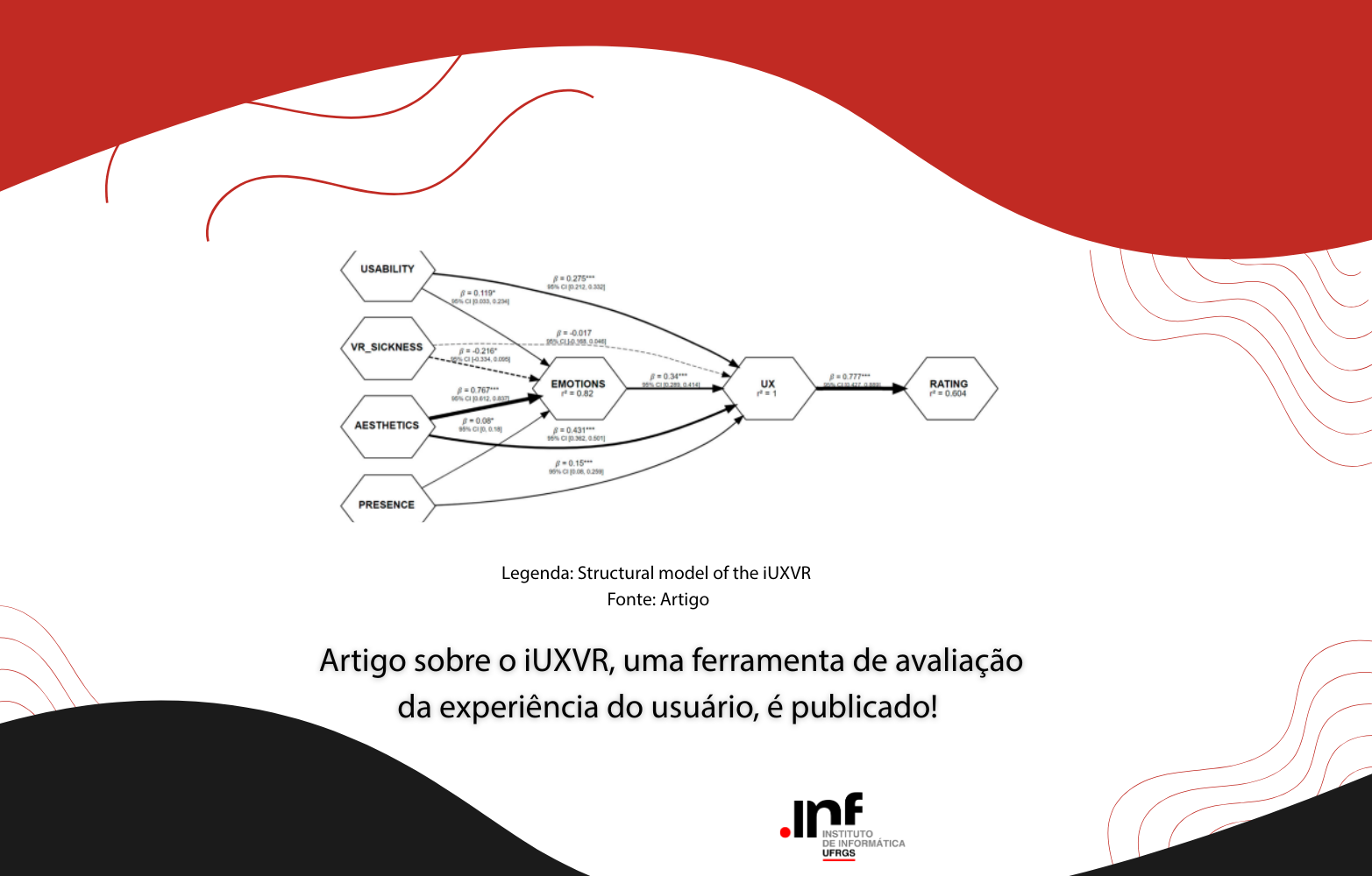 Com vinte e cinco itens distribuídos em cinco dimensões — usabilidade, presença, estética, “VR sickness” e emoções —, o iUXVR foi respondido por 126 participantes, que evidenciam que a estética, a usabilidade e as emoções têm um impacto maior na experiência do que a sensação de presença.