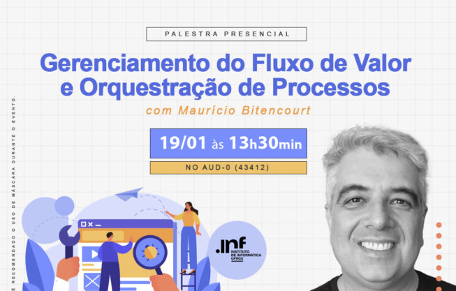 No dia 19 de janeiro (quinta-feira), às 13:30 no AUD-0 (43412), a Professora do Instituto de Informática, Lucineia Heloisa Thom, irá promover a palestra “Gerenciamento do Fluxo de Valor e Orquestração de Processos”, ministrada por Maurício Bitencourt, baseada no contexto da disciplina “Modelagem e Gerenciamento de Processos de Negócio” oferecida para a graduação e pós-graduação.