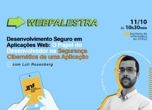 Desenvolvimento Seguro em Aplicações Web: O Papel do Desenvolvedor na Segurança Cibernética de uma Aplicação é o tema da webpalestra que ocorrerá no dia 11 de outubro às 10h30min, ministrada por Luli Rosenberg.