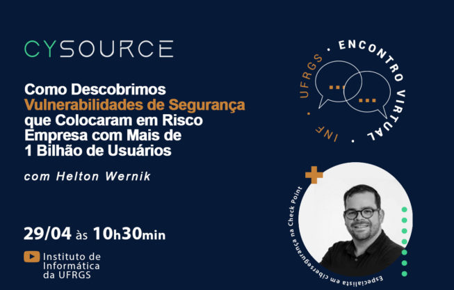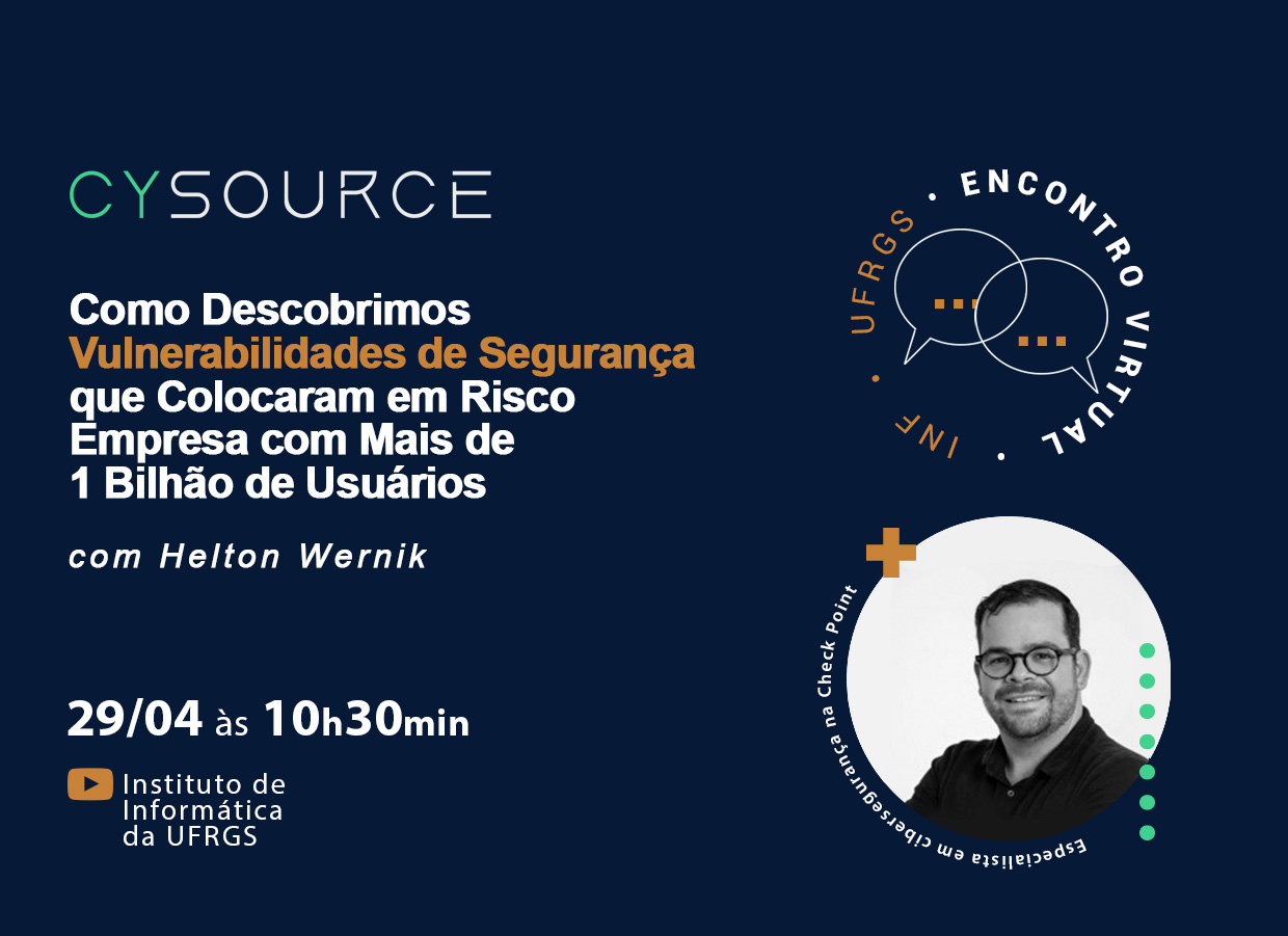 Como Descobrimos Vulnerabilidades de Segurança que Colocaram em Risco Empresa com Mais de 1 Bilhão de Usuários é o tema da palestra ministrada por Helton Israel Wernik para a comunidade acadêmica do Instituto de Informática da UFRGS e o público em geral.