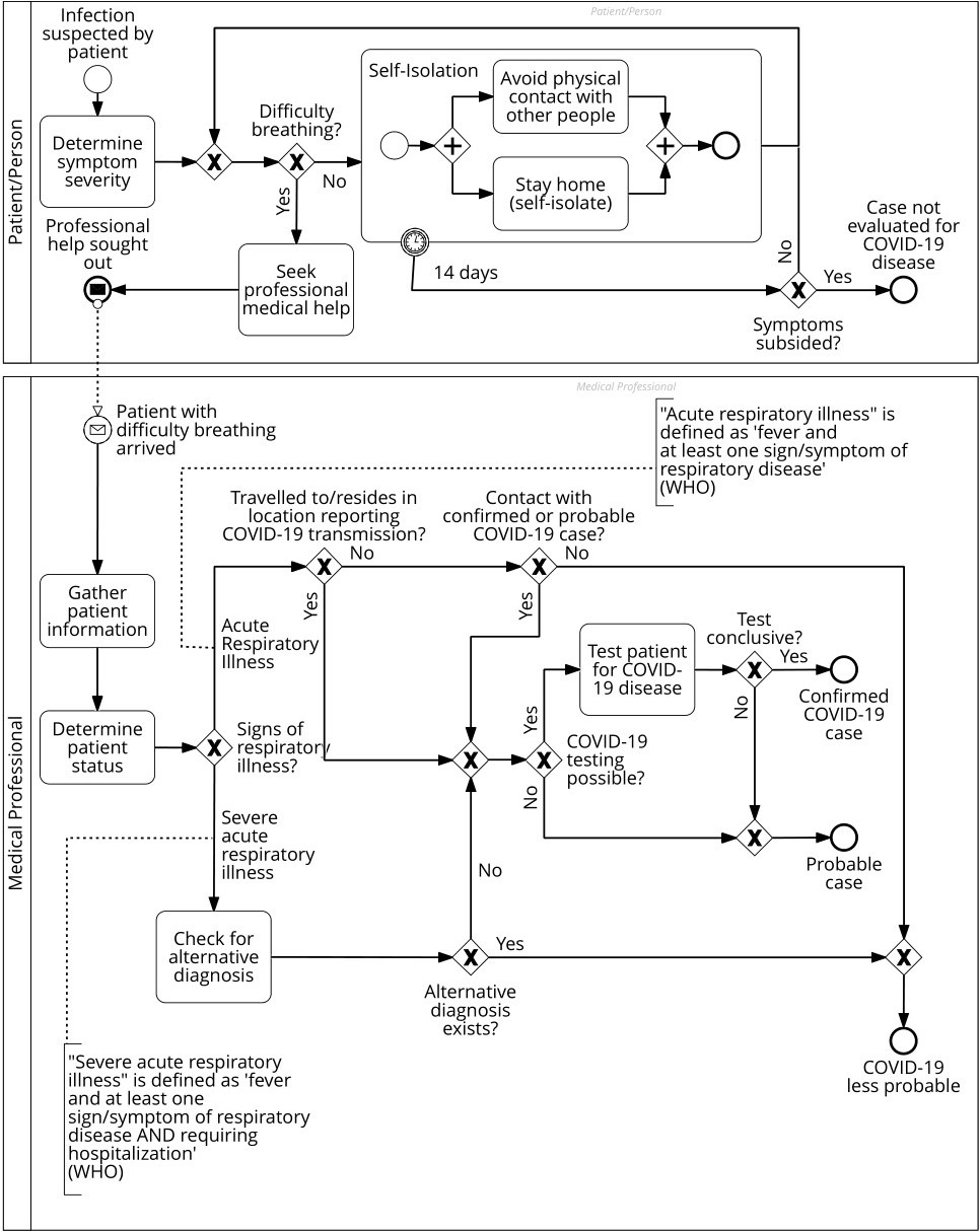 O aluno do curso de Ciência da Computação do Instituto de Informática da Universidade Federal do Rio Grande do Sul, Nicolas Mauro de Moreira Bohnenberger, modelou os processos de transmissão e contágio de humano para humano do SARS-CoV-2 e os processos de identificação e manifestação sintomática da COVID-19. A pesquisa, cujo objetivo principal é a identificação de similaridades e variantes entre os processos do SARS-CoV-2 e da COVID-19 com outros vírus e doenças, está sob orientação da professora adjunta do INF, Lucineia Heloisa Thom e foi desenvolvida em cooperação com a médica Alessandra Ceolin Schmitt da Mayo Clinic (Scottsdale, Arizona).
