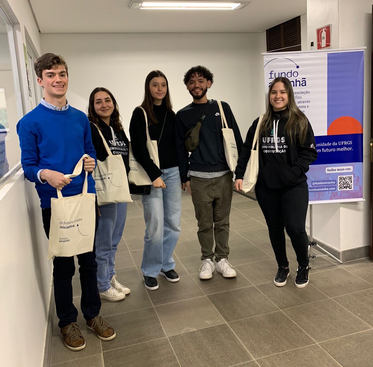 Na última segunda-feira, 25/09, o Fundo Amanhã recepcionou os primeiros estudantes selecionados pelo edital do programa Amanhã Tech: programa de aceleração para estudantes entrantes pela modalidade de cotas dos cursos de Ciência e Engenharia da computação da UFRGS. A proposta do programa é oferecer bolsa-auxílio, bolsa de inglês, aulas de reforço na disciplina de cálculo, mentorias com profissionais da área e tutoria com professores do Instituto de Informática da UFRGS (INF). Com este robusto apoio, o programa prevê alavancar o desenvolvimento desses estudantes e contribuir para sua permanência na Universidade.
