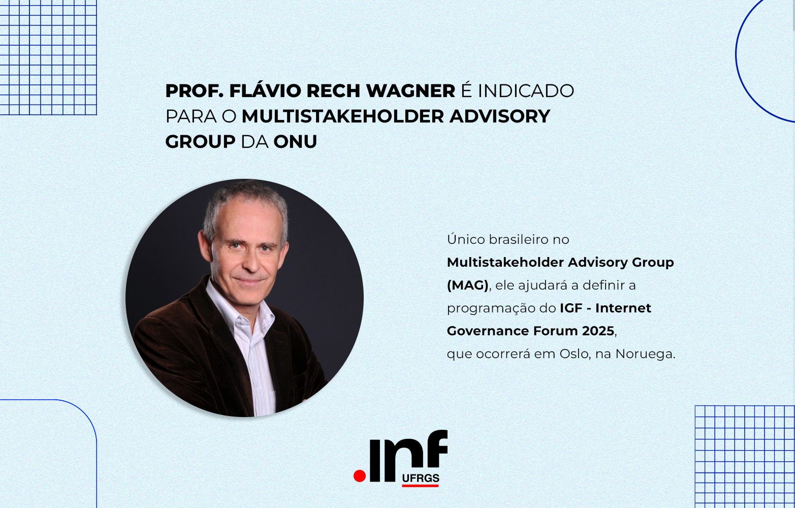 O professor Flávio Rech Wagner, do Instituto de Informática da UFRGS, foi indicado pelo Secretário-Geral da ONU para integrar o Multistakeholder Advisory Group (MAG), comissão responsável pela definição da programação do Internet Governance Forum (IGF) – o principal encontro global sobre governança da Internet.