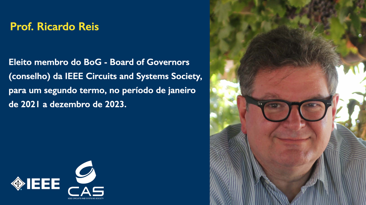 Recentemente, o Prof. do Instituto de Informática, Ricardo Reis, foi eleito membro do BoG – Board of Governors (Conselho) da IEEE Circuits and Systems Society para um segundo mandato, entre janeiro de 2021 a 2023.