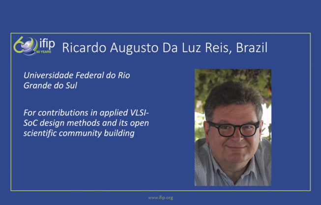 O prof. Ricardo Reis recebeu oficialmente em 21 de dezembro, em evento virtual desde a Austria, o IFIP Fellow Award, por suas contribuições em métodos de projeto aplicados em VLSI-SoC e pela construção de uma comunidade científica na área. O evento foi em comemoração aos 60 anos da IFIP (International Federation on Information Processing).