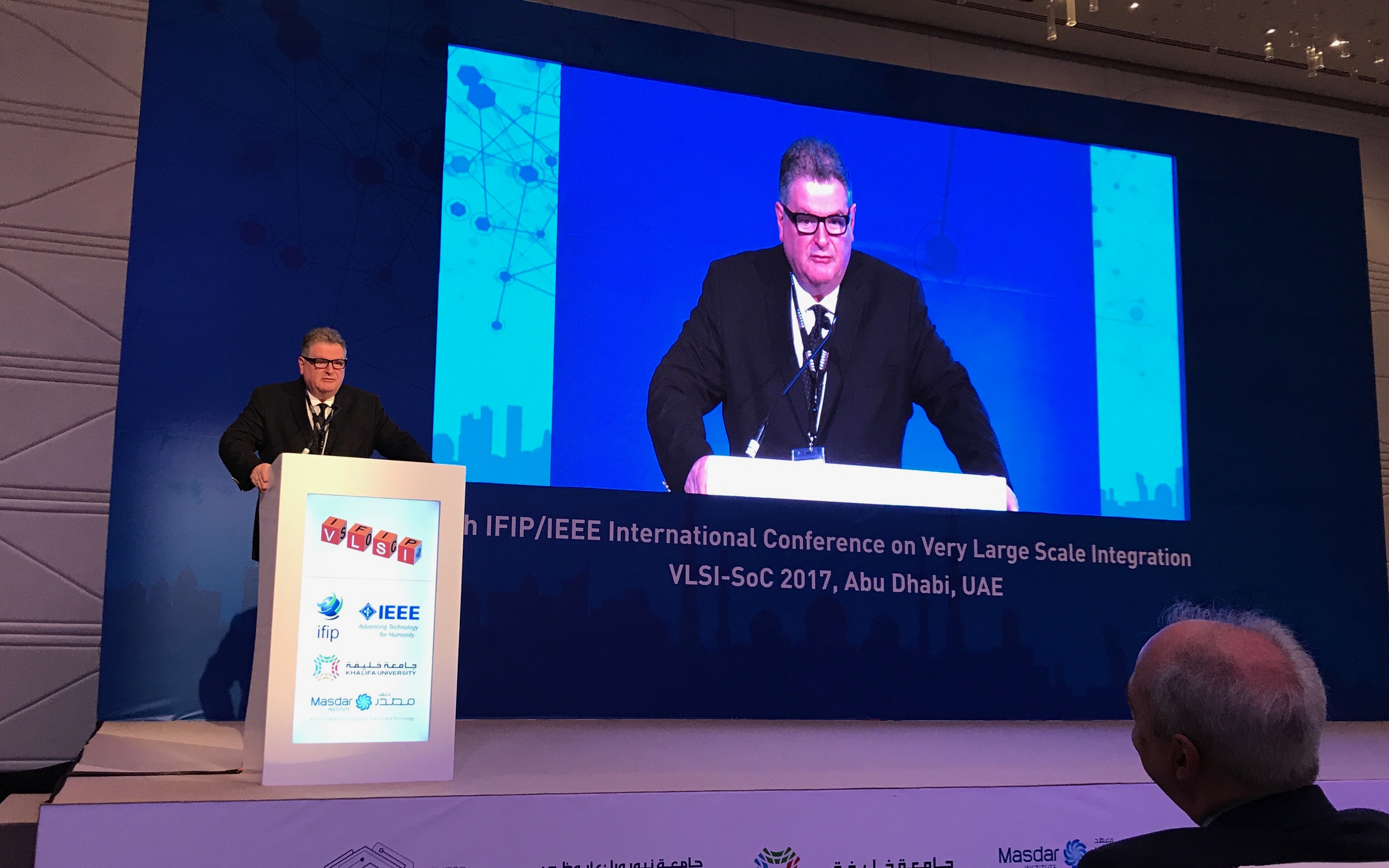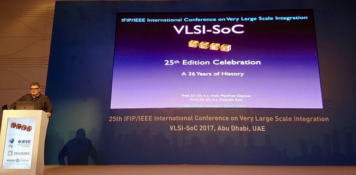 A abertura da 25ª edição do IFIP/IEEE VLSI-SoC, que ocorreu de 22 a 25 de outubro, em Abu Dhabi, contou com a presença do professor Ricardo Reis, Coordenador do TC10 (Technical Committee 10 da IFIP) e, que também representou Mike Hinchey, presidente da IFIP, transmitindo os parabéns pela comemoração da 25ª edição do evento, cuja a primeira foi em 1981, em Edinburg, na Escócia. Em 1997, foi a primeira vez que o evento foi organizado no Brasil, em Gramado, tendo sido o professor Reis coordenador geral.