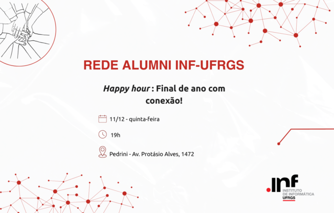 A Associação Alumni INF-UFRGS, de ex-alunos do Instituto de Informática da Universidade Federal do Rio Grande do Sul, convida seus membros para o Happy hour de Final de Ano!