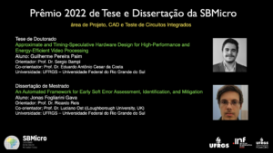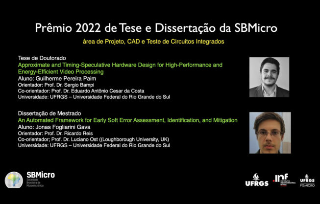 Os alunos do Programa de Pós-graduação em Computação do Instituto de Informática da UFGRS, Guilherme Paim e Jonas Gava foram vencedores da área de Projeto, CAD e Teste de Circuitos Integrados, do Concurso de Teses e Dissertações 2022 da Sociedade Brasileira de Microeletrônica.