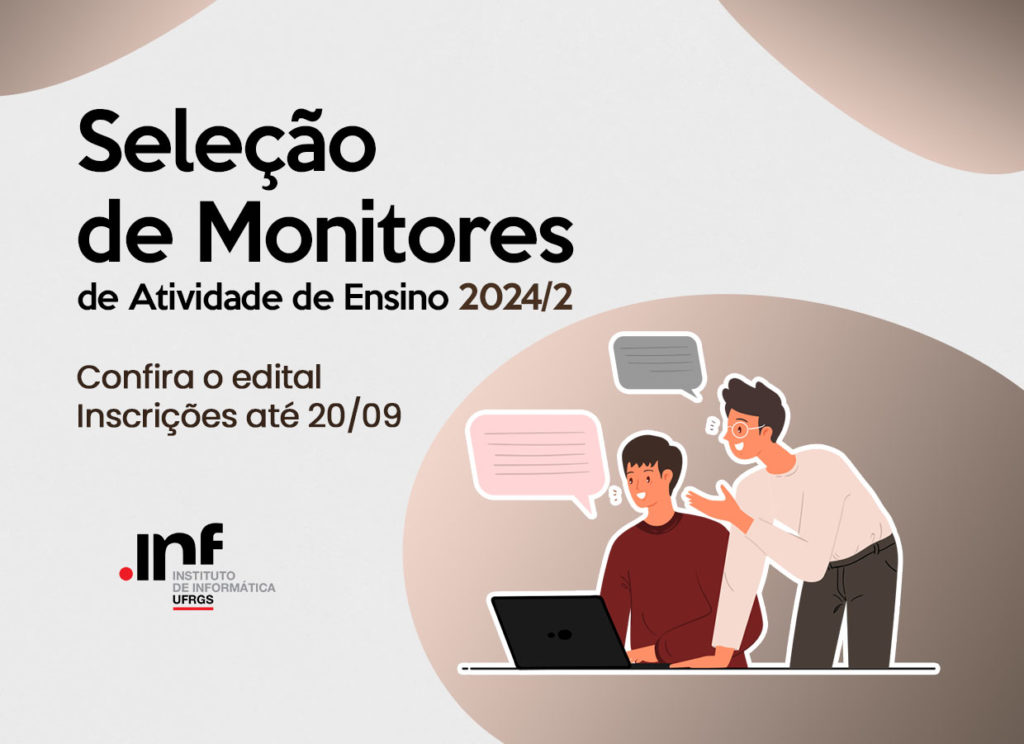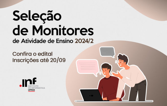O Instituto de Informática da UFRGS anuncia a publicação do Edital nº 03/2024, referente à seleção de monitores de atividades de ensino para o segundo semestre de 2024. As inscrições estão abertas até o dia 20 de setembro de 2024 e devem ser realizadas através do Portal do Aluno.