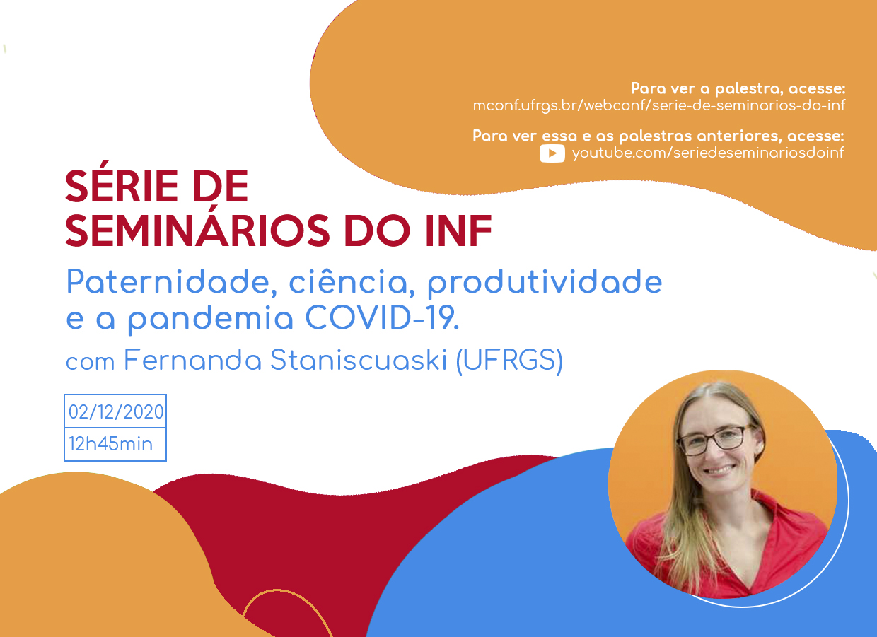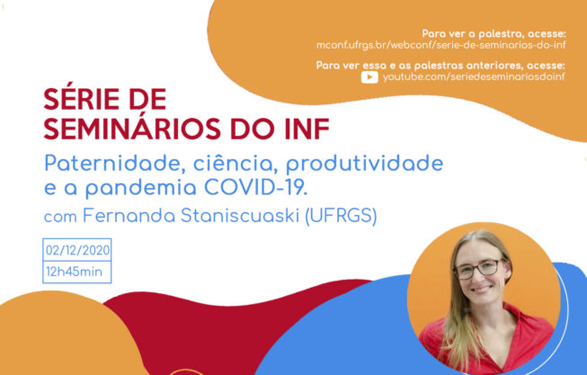 Paternidade, ciência, produtividade e a pandemia COVID-19 é o título da próxima palestra da Série de Seminários do Instituto de Informática da UFRGS. A conferência será ministrada pela Profa. Fernanda Staniscuaski.