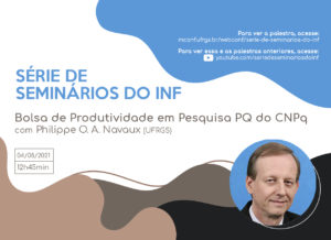O evento acontece na próxima quarta-feira, 04 de agosto, às 12h45. Para acompanhar a transmissão ao vivo, acesse: https://mconf.ufrgs.br/webconf/serie-de-seminarios-do-inf.