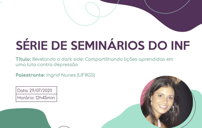 Na quarta-feira da semana que vem, dia 29/07 às 12h45min acontecerá a palestra “Revelando o dark side: Compartilhando lições aprendidas em uma luta contra depressão)”, ministrada pela professora adjunta do Instituto de Informática da UFRGS, Ingrid Nunes.