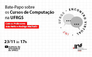 A edição de 2021 do UFRGS Portas Abertas ocorrerá, na modalidade online, de maio a dezembro. Para apresentar o Instituto de Informática e algumas de suas principais atividades (ex: cursos de graduação, pesquisas e apoio a empreendimentos), organizamos a lista de atividades e recursos abaixo, que inclui lives e vídeos. Recomendamos retornar periodicamente a essa página para obter informações atualizadas.