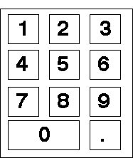 Duas disposições têm sido usadas para este teclado. A mais freqüente é a disposição tipo máquina de calcular.