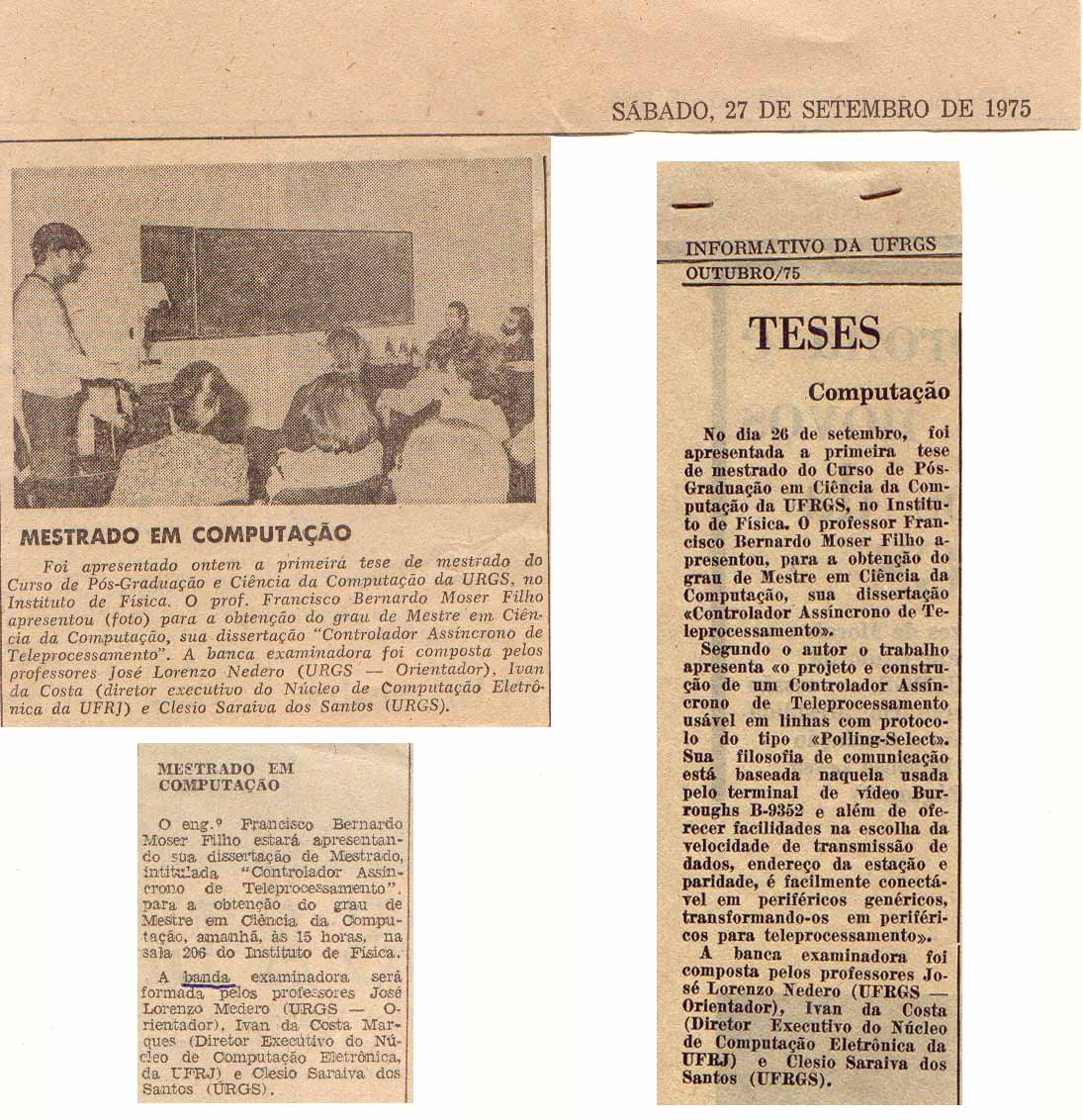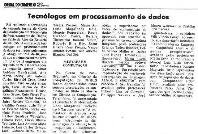 | Defesas (1) | Notícia do Jornal do Comércio: defesas de Liane, M. Lúcia, Villi, Renato Brito e formandos do curso de Tecnólogo em PD (leia os nomes...) |