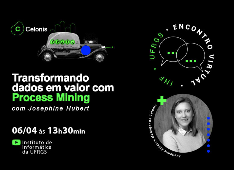 Transformando dados em valor com Process Mining é o tema da palestra ministrada por Josephine Hubert para toda a comunidade acadêmica do Instituto de Informática da UFRGS e para as demais pessoas interessadas no assunto. O público-alvo são discentes em nível de graduação e pós-graduação, assim como docentes da Engenharia e Ciência da Computação.