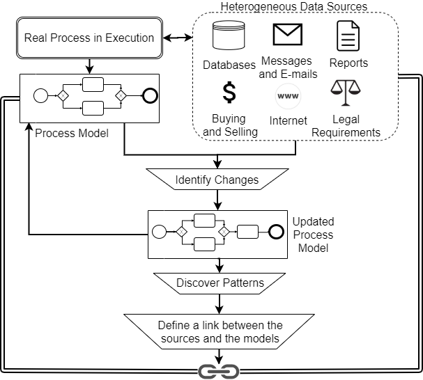 Keeping conceptual process models up to date is a challenge. Not always conceptual process models are immediately transformed into executable models and with time they can become not updated. In this research line, we are developing an approach to keep conceptual process models updated. The approach will be based on heterogeneous sources and process mining.