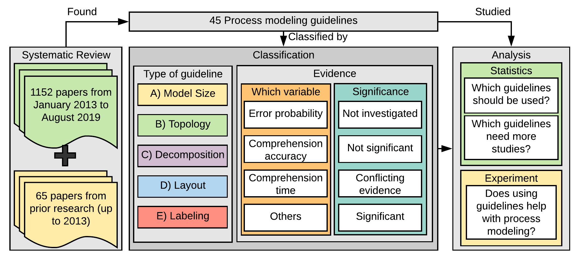 - Diego Toralles Avila, Rubens Santos, Jan Mendling, Lucineia Heloisa Thom, A systematic literature review of process modeling guidelines and their empirical support. Business Process Management Journal, 2020. DOI: 10.1108/BPMJ-10-2019-0407